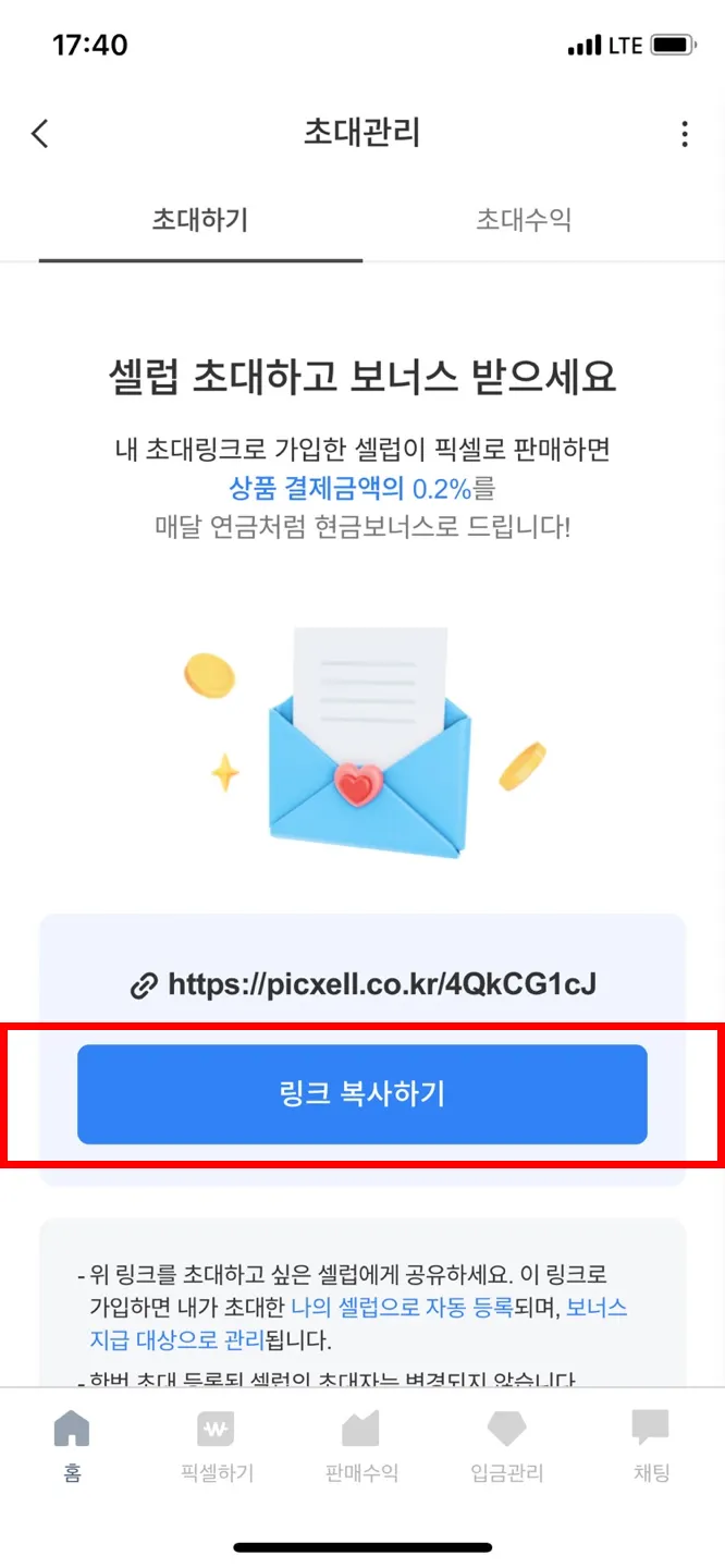링크 복사하기 버튼을 눌러 링크를 공유하세요.
