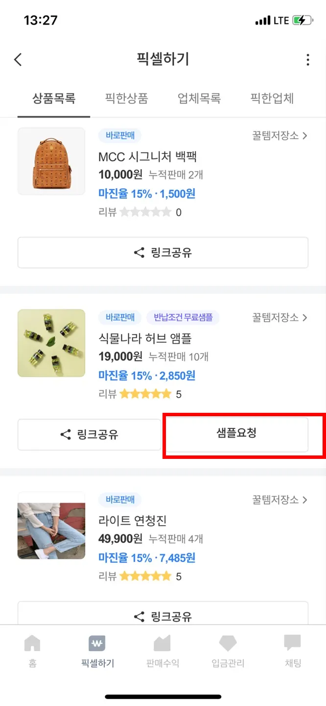 상품을 판매하기 전, 샘플을 먼저 받아보고 사용 후기를 정성스레 남겨보세요.