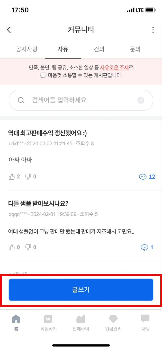 글쓰기 버튼을 눌러 글을 작성해 보세요.
